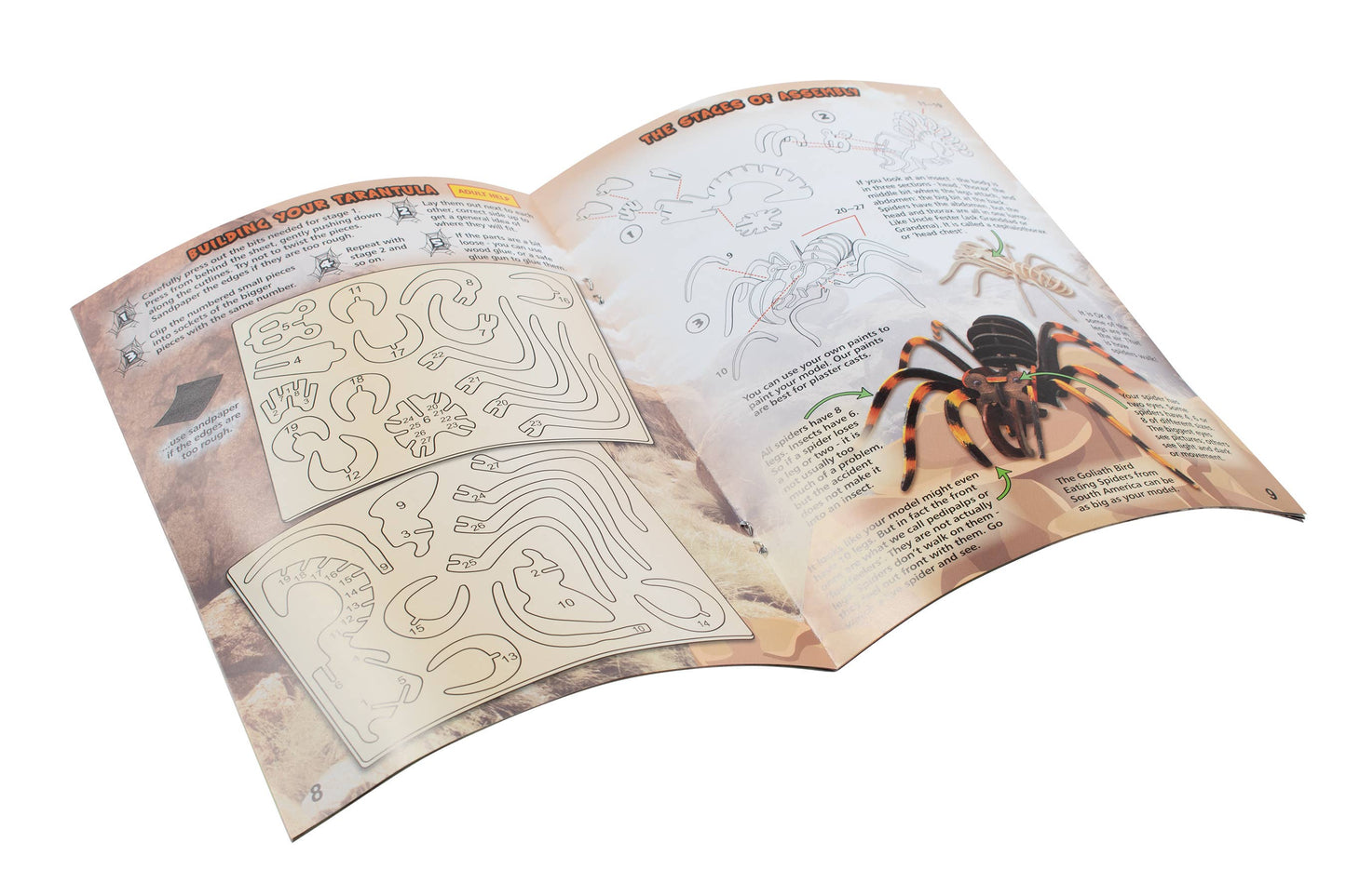 Extreme Spiders of the World is a hands-on, collectible animal kit, which combines science and crafts. Children will make a life-size Tarantula Spider eating a lizard and a life-size egg sac with spiderlings. They will also assemble a detailed 3D wooden model of a Tarantula. A desert diorama is included for children to build and decorate with their spider artifacts. The kit also includes a spiders poster and all of the materials required for the craft activities. Teach children about 10 of the worlds most extreme spiders. Using the full-color education and instruction booklet, children will gain an understanding of STEM concepts while creating their own spider-related products to be proud of. For kids ages 6+. Size of poster: 16.5"L x 11.7"W.