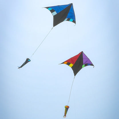 This unique Cool Breeze Delta Kite is easy to fly and looks beautiful in the sky! A 26" detachable, color-coordinated twisting windsock with flowing streamers complements the kite’s bright colors while adding pizzazz to the stable delta platform. This versatile and colorful kite is fun for the whole family!
