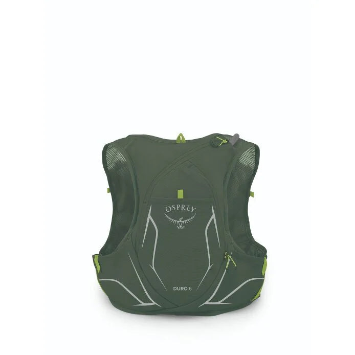 The road ahead may be long, but you're ready. The Duro 6 is a favorite choice for trail runners and racers who don't tap the brakes. Its included 1.5-liter reservoir inspires confidence when your journey takes you beyond support, and it has enough room for extra layers and calories for big days. Made with 100% recycled materials.